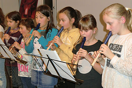 Flötenkids Carina, Anne, Laura, Lara, Luna, Marietta, Kerstin und Nils das
