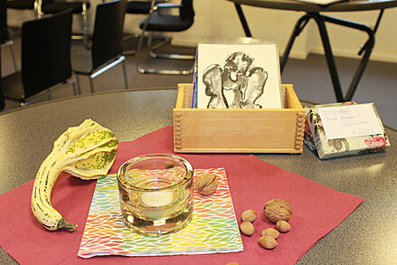 Elf Flötenkids um Michaela Rohkohl überraschten mit hervorragend einstudierten Ohrwürmern, die gelungenen Frauenportraits von Agnes Neumaier zierten die Wände und Autorin Christine Störr sorgte mit Gedichten und Geschichten mit Tiefgang für Gänsehautfeeling. Schon der große, von Künstlerin Agnes Neumaier bunt-getöpferte prächtige Vogel, der die Gäste im Foyer des Rathauses begrüßte, war ein ganz besonderer Blickfang. Flackernde Kerzen, bebilderte Staffeleien und bunt beschriftete Spiegel begleiteten dann bis hoch unter das Dach des Rathauses, in den spätherbstlich geschmückten Bürgersaal.