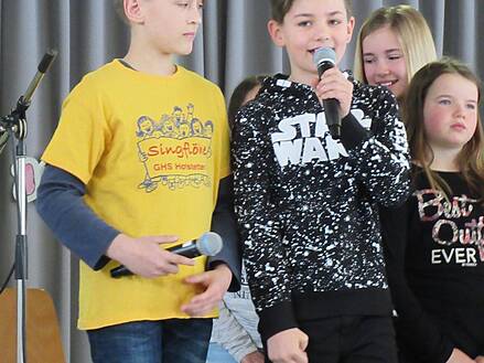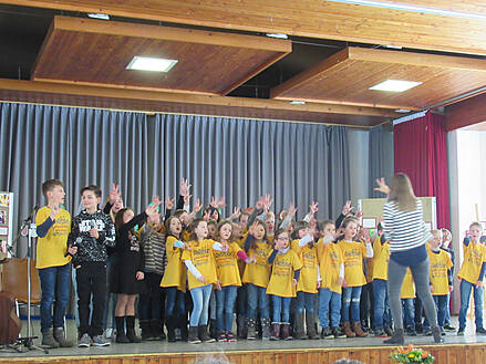 Schule ihr Publikum mit Liedern aus dem Musical „Drei Wünsche frei“, einem