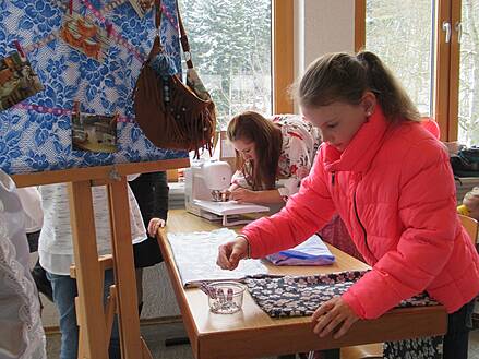mit Ingrid Lippler und kleine Näharbeiten mit Sandra Gast, bei den