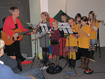 »Flötenkids« um Michaela Rohkohl begleitet.