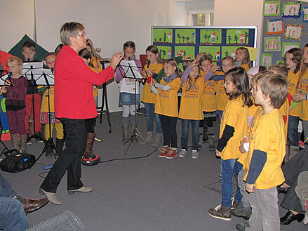 die »Singflöhe« unter der Leitung von Lehrerein Michaela