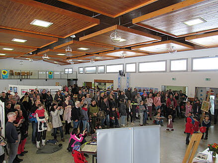 Während es für die Kinder anschließend mit Verkleidungsaktion, Kinderschminken, Fotoaktion und Maltisch einiges zu entdecken gab, nutzten die Erwachsenen die Zeit zum Stöbern. In zwei großen Fotoalben waren sämtliche Aufnahmen der letztjährigen KiD-Ausstellung „Hofstetten, es war einmal… Höfe, Handwerk, Federvieh“ aufbereitet und sorgten für viel Gesprächsstoff und Erinnerungen ans Damals. Friedhilde Brucker demonstrierte das Binden eines Trachtenkranzes, die Hobbykünstler gewährten interessante Einblicke und die Jungmusiker der Hofstetter Musikkapelle unterhielten nachmittags lautstark. Am Ende waren sich viele der Gäste einig: „Ein rundum gelungenes Wochenende!“