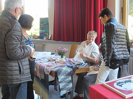 zeigten ihre Strick-Arbeiten und hatten große Patchwork-Decken aufgehängt, von