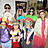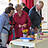 mit ihren Freundinnen, die aufwendige Karten und Dekorationen ausstellten.