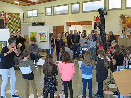 Gemeindehalle und wurde dabei von den Flötenkids um Michaela Rohkohl